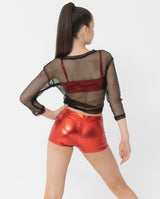 Our Long Sleeve Fishnet Crop is great as the centre piece of your dance costume, or to complement your ensemble. This fishnet dance crop gives great movement as you dance, or it can be tied or tucked for a shorter style.