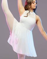 With subtle lace leaf detailing, soft mesh skirt and a beautiful open back, you’ll be sure to fall in love with this timeless classic.