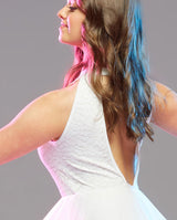 With subtle lace leaf detailing, soft mesh skirt and a beautiful open back, you’ll be sure to fall in love with this timeless classic.