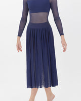 This exquisite split-leg mesh skirt with in-built brief, accentuates movement with its full-length design.